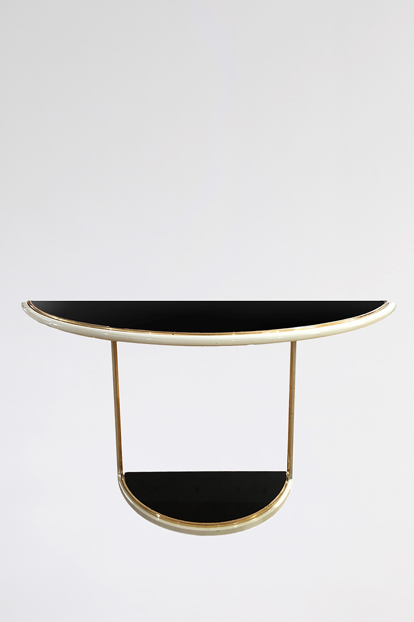 Tommaso Barbi - Console140 cm x 42 cm x 74 cm H in metallo laccato e ottone, piani in vetro opaline nera.