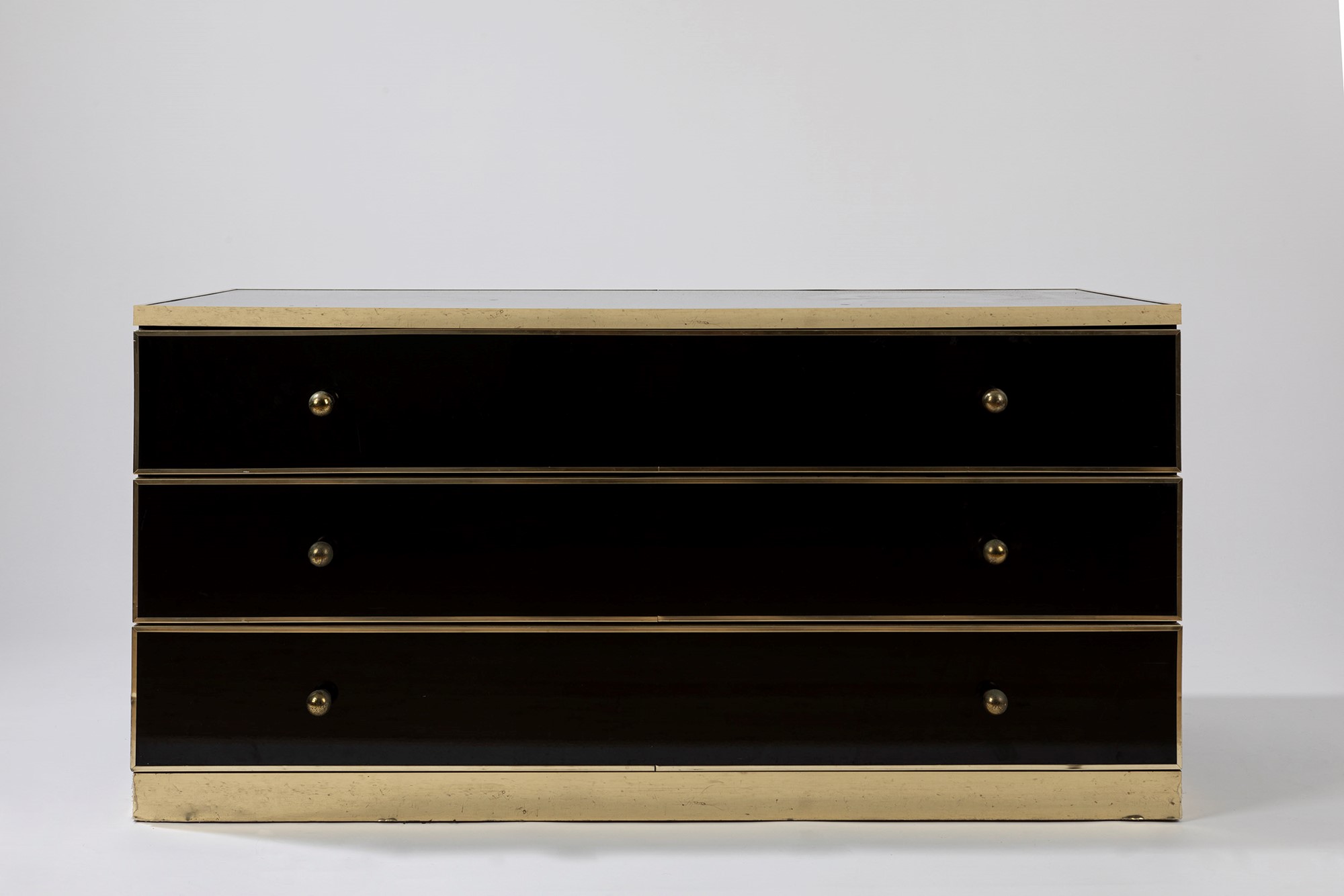 Manifattura Italiana - Cassettiera110cm x 50cm x h 54cm laccata nera con dettagli in ottone.