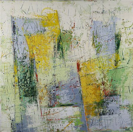 IOTTI MARINO (n. 1954) Senza titolo. Olio su tela. Cm 100,00 x 100,00 x 2,00. Firma in basso a destra. Autentica dell'artista su fotografia.