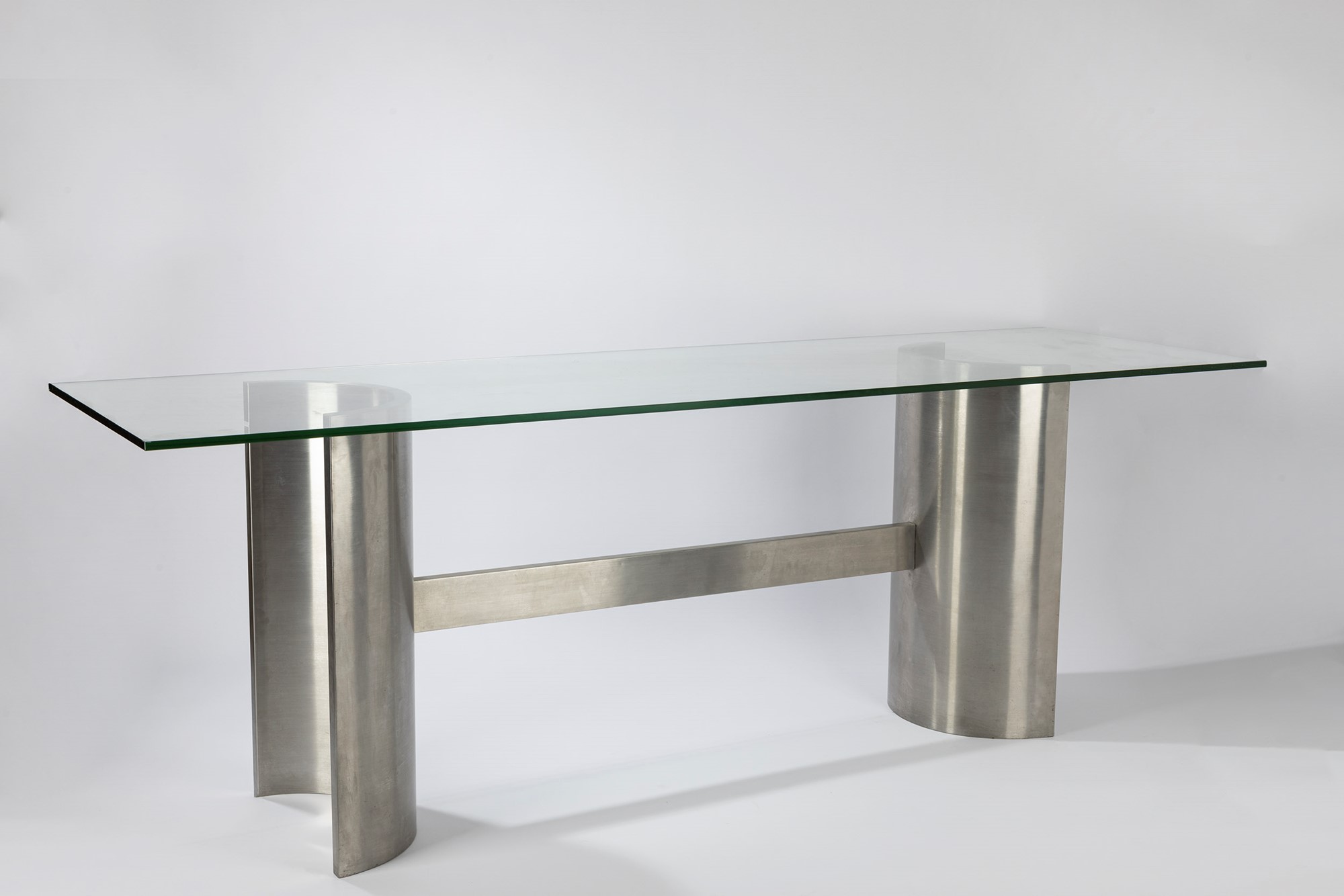 Manifattura Italiana - Consolecm 240 x 81 x 72,5 con base in acciaio e piano in vetro.