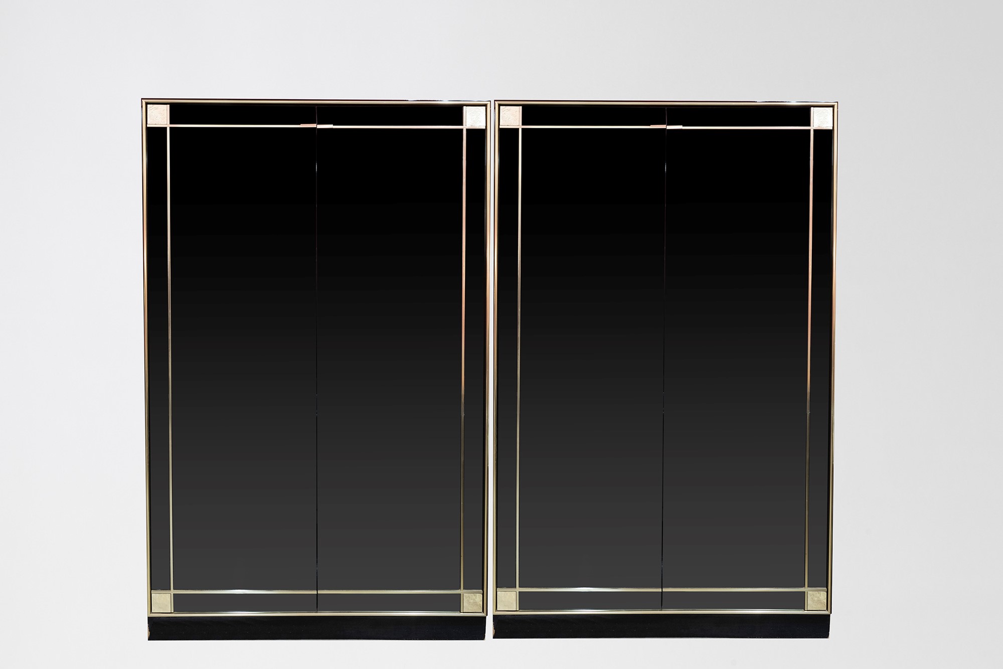 Pierre Cardin - Coppia di vetrinecm 90 x 38 x 142 a due ante con ripiani in vetro in legno laccato nero e ottone.