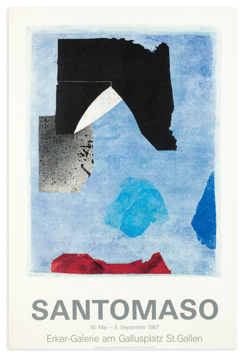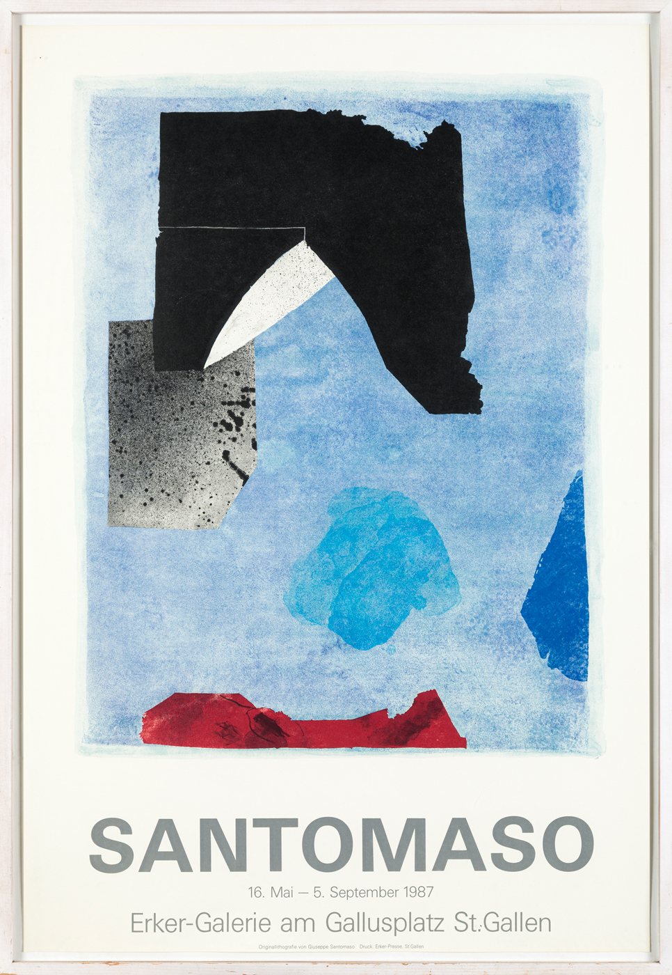 Locandina dell'esposizione personale 'Santomaso' tenutasi presso Erker-Galerie am Gallusplatz St. Gallen, 1987