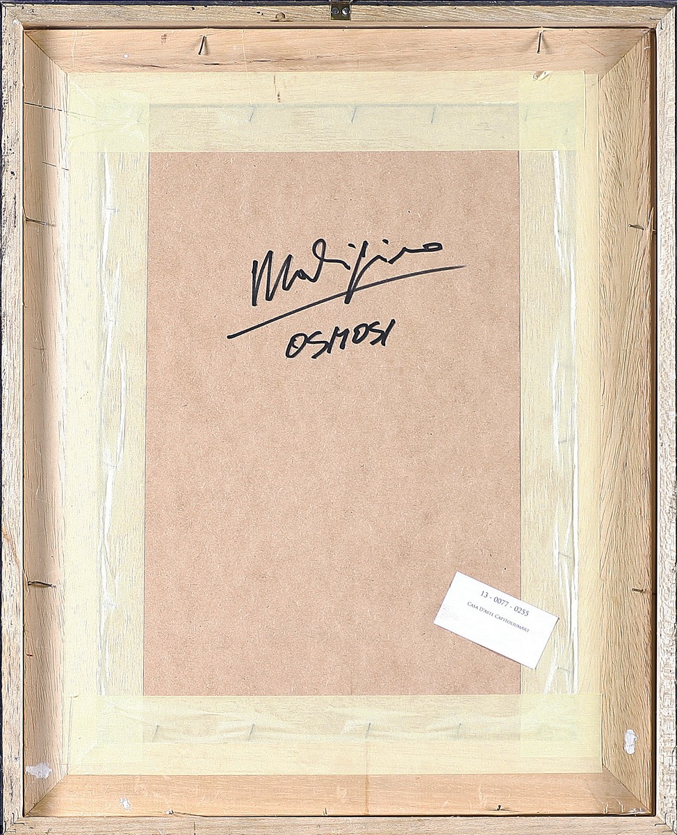 MALIPIERO (n. 1934) Osmosi. Tecnica mista e collage su tavola. Cm 30,00 x 40,00. Al retro firma e titolo. Autentica dell'artista su fotografia. Cornice presente
