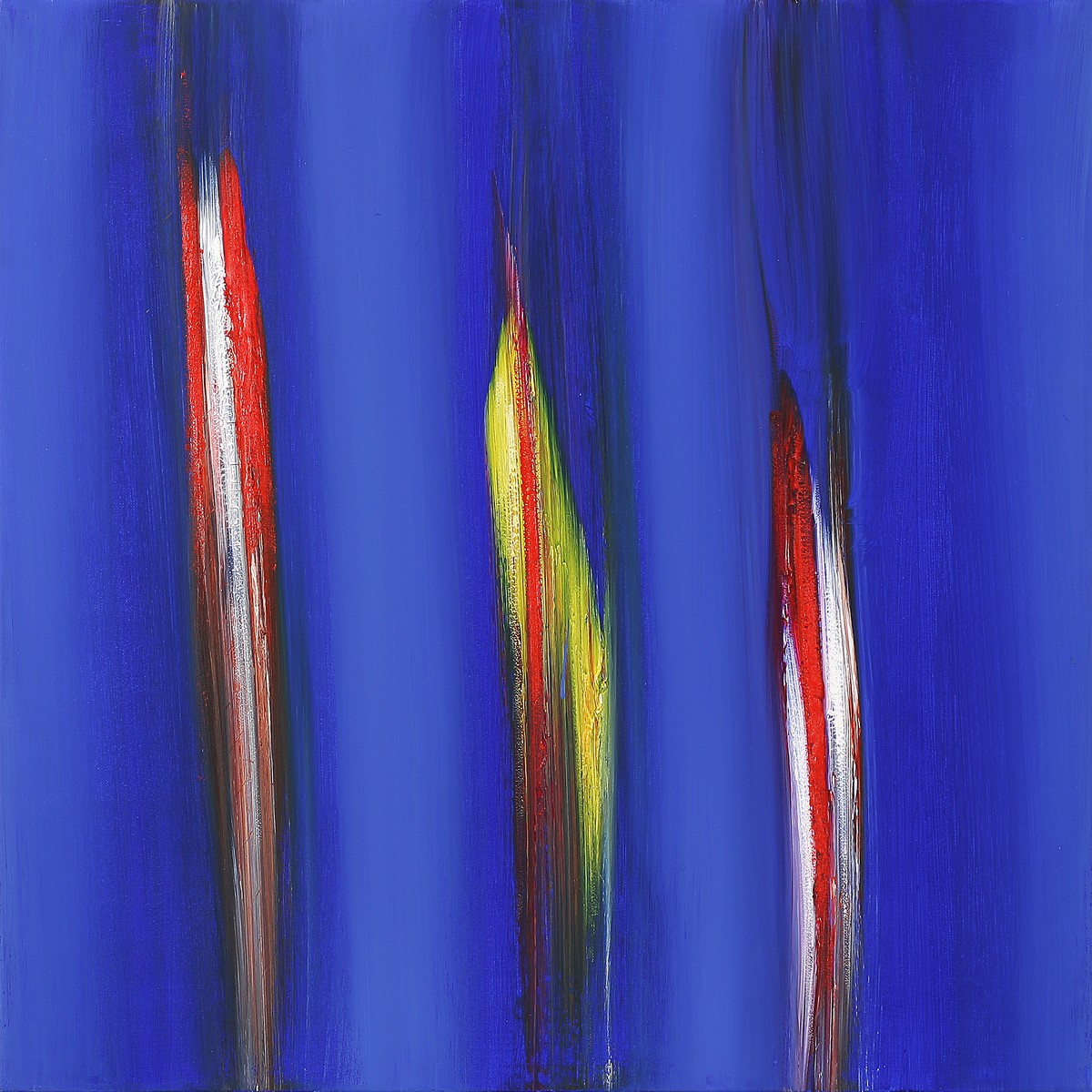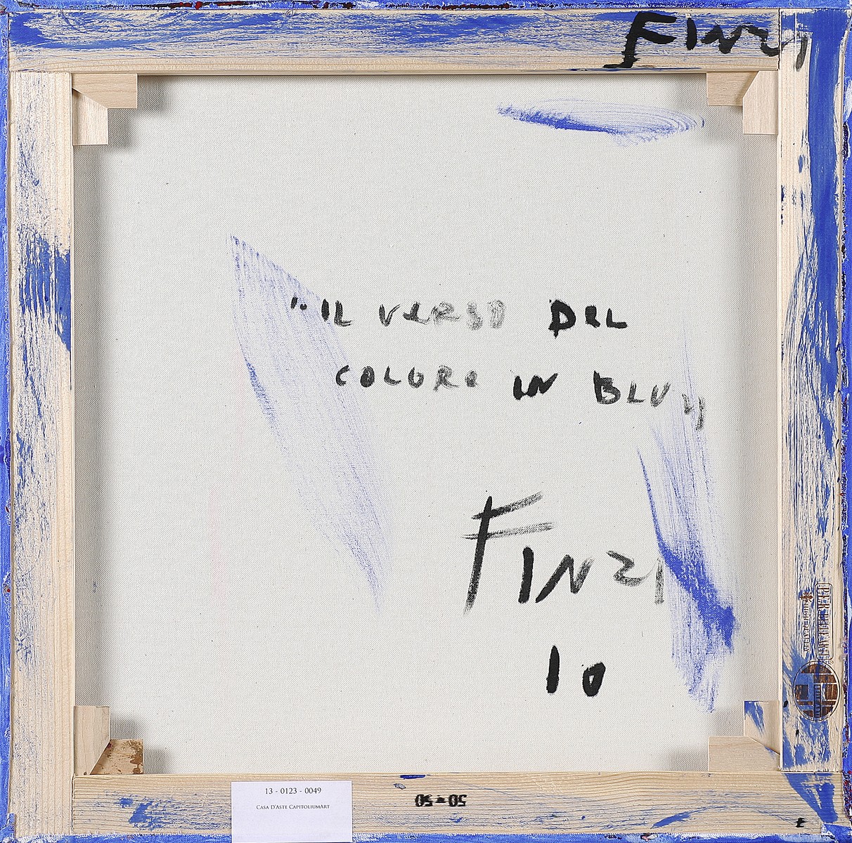 FINZI ENNIO (n. 1931) Il verso del colore in blu. 2010. Olio su tela . Cm 50,00 x 50,00. Al retro titolo, firma e data. Autentica dell'artista su fotografia.
