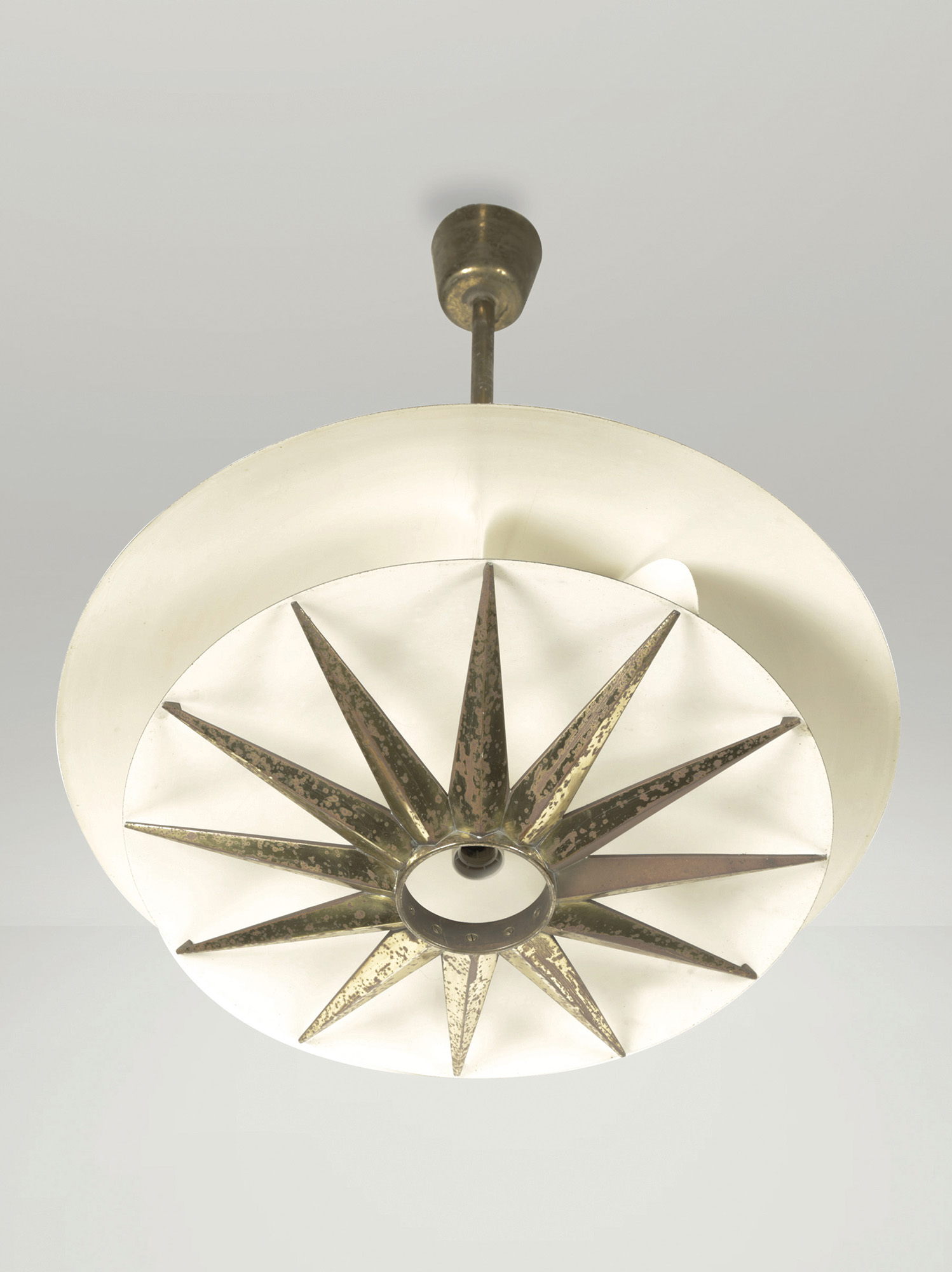 T. Buzzi, a pendant lamp, Italy, 1950s Metal and brass. Prod. Donzelli. 66x84cm