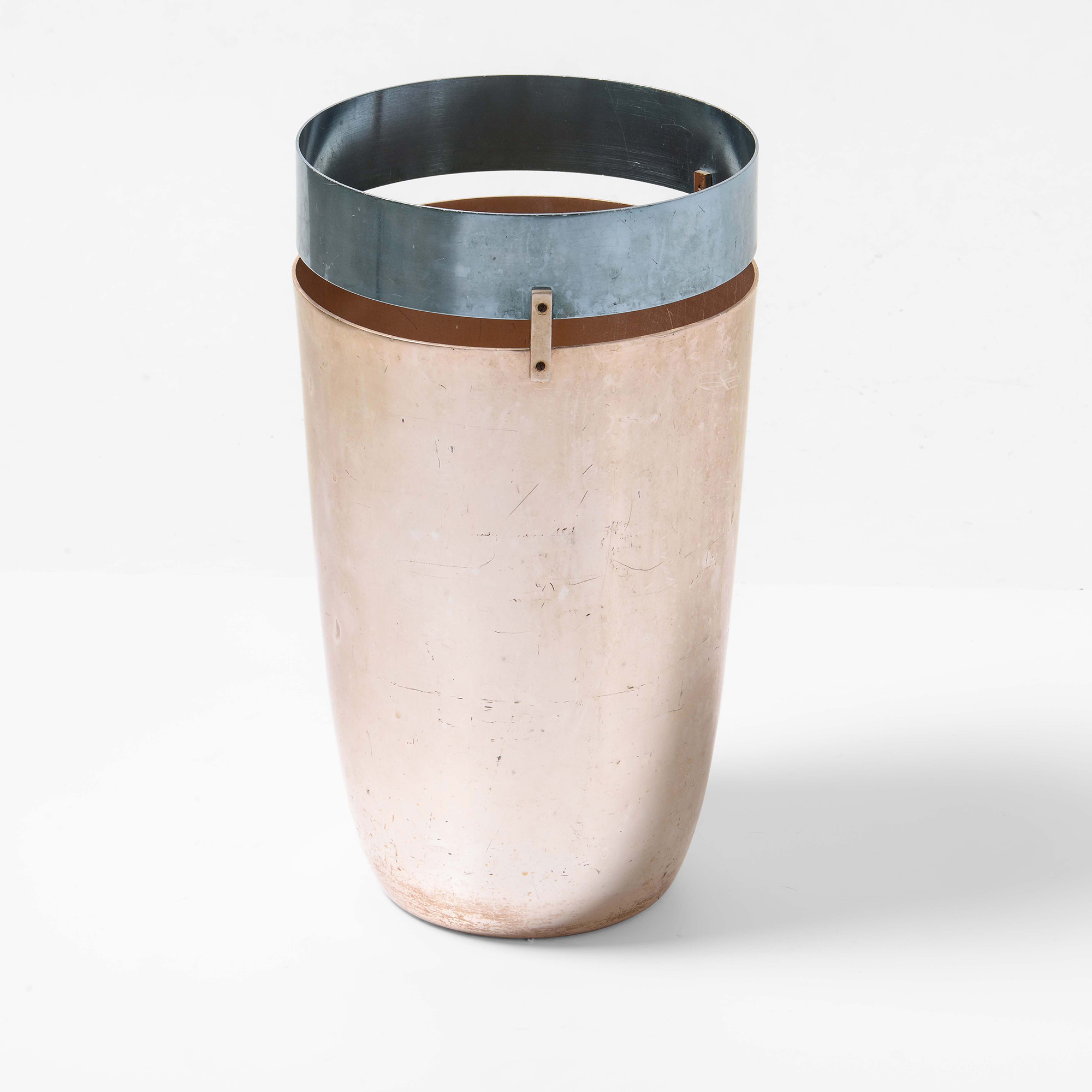 Ettore Sottsass, Portaombrelli con struttura in metallo e alluminio anodizzato. Marchio originale. Prod. Rinnovel, Italia, 1950 ca. cm 49x28,5