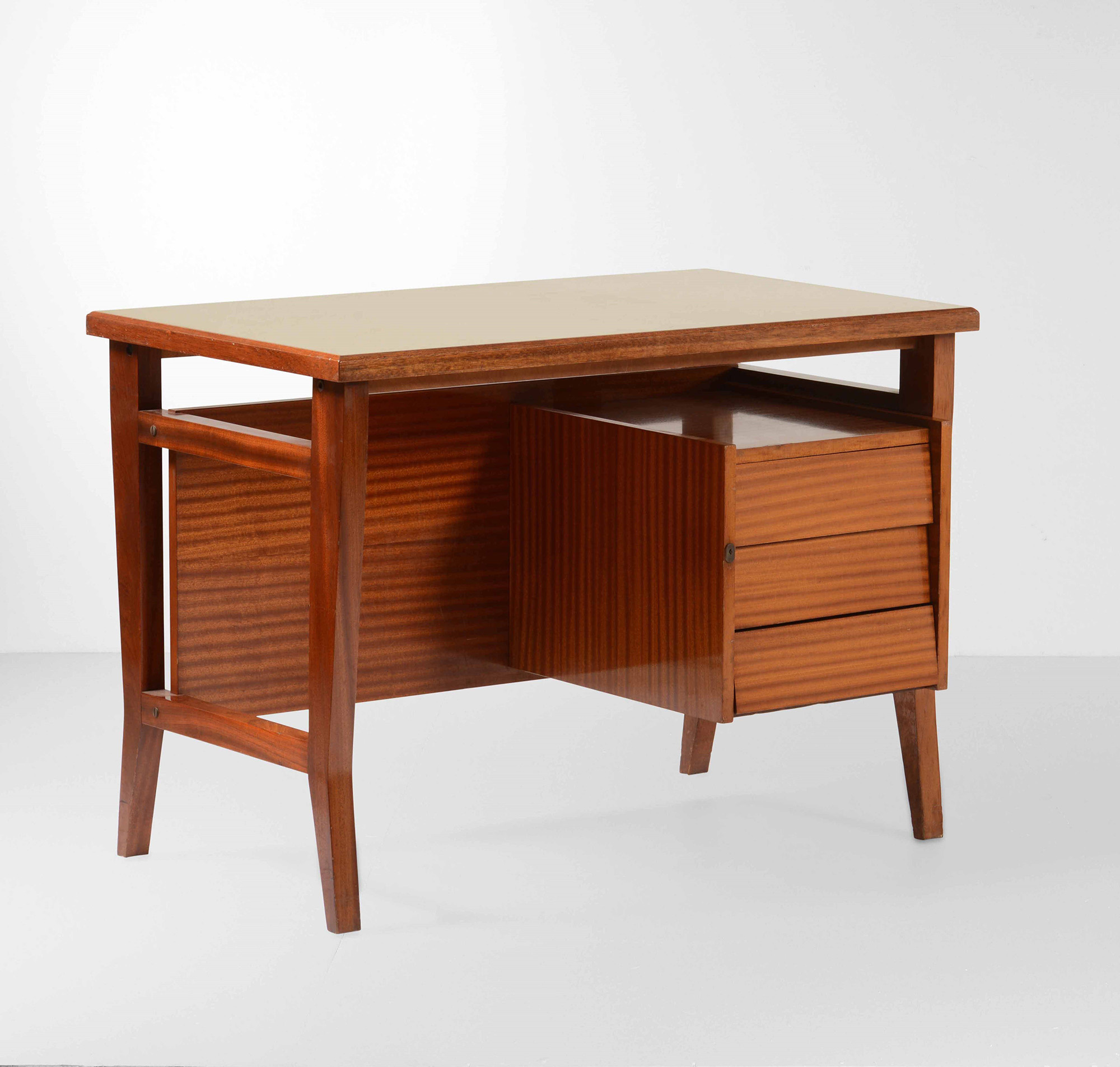 Gio Ponti, Scrivania a cassetti con struttura in legno e piano in legno laminato. Prod. Schirolli, Italia, 1950 ca. cm 110x65x78