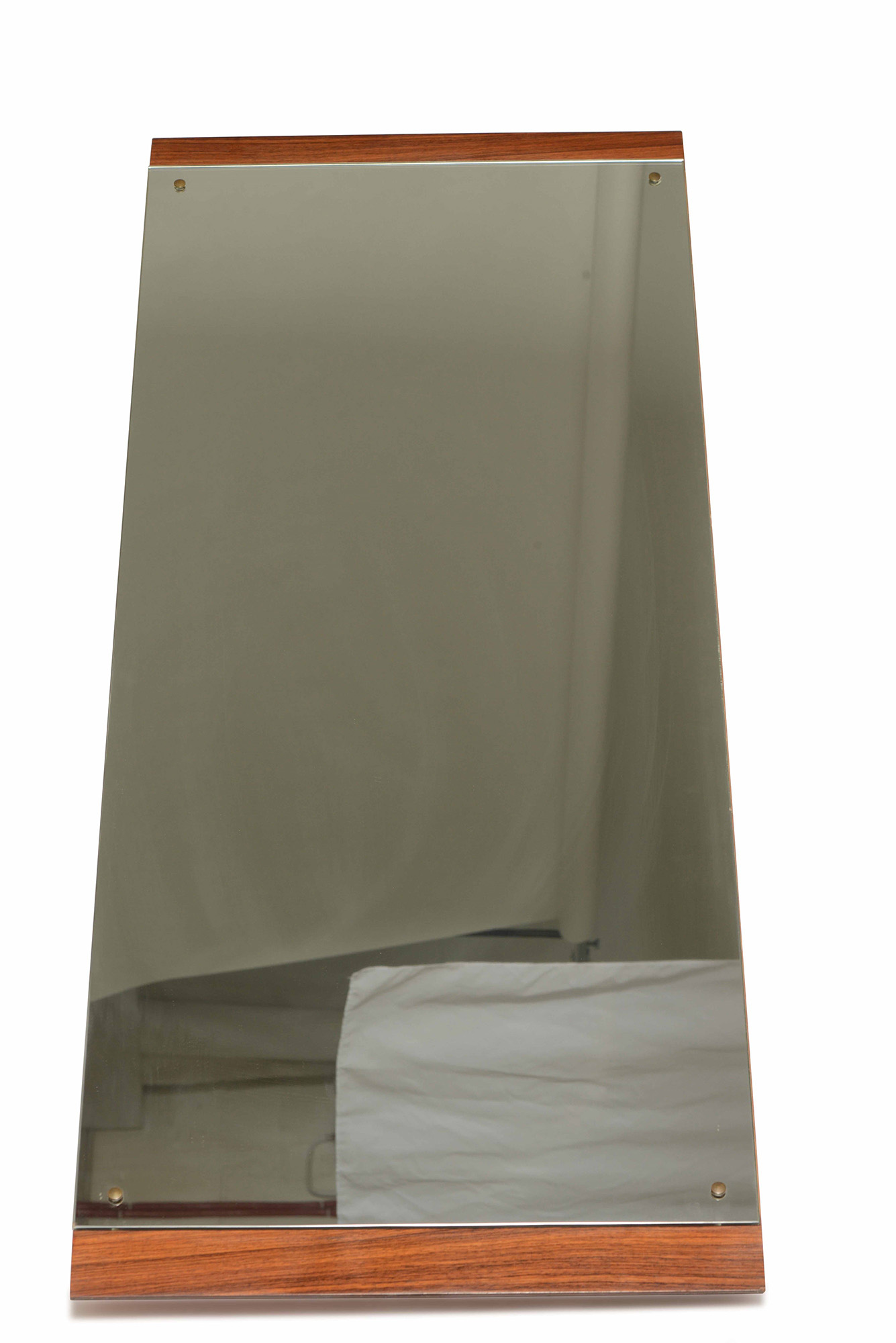 Grande specchiera da parete con struttura in legno e cristallo specchiato., Prod. Italia, 1950 ca. cm 180x68,5