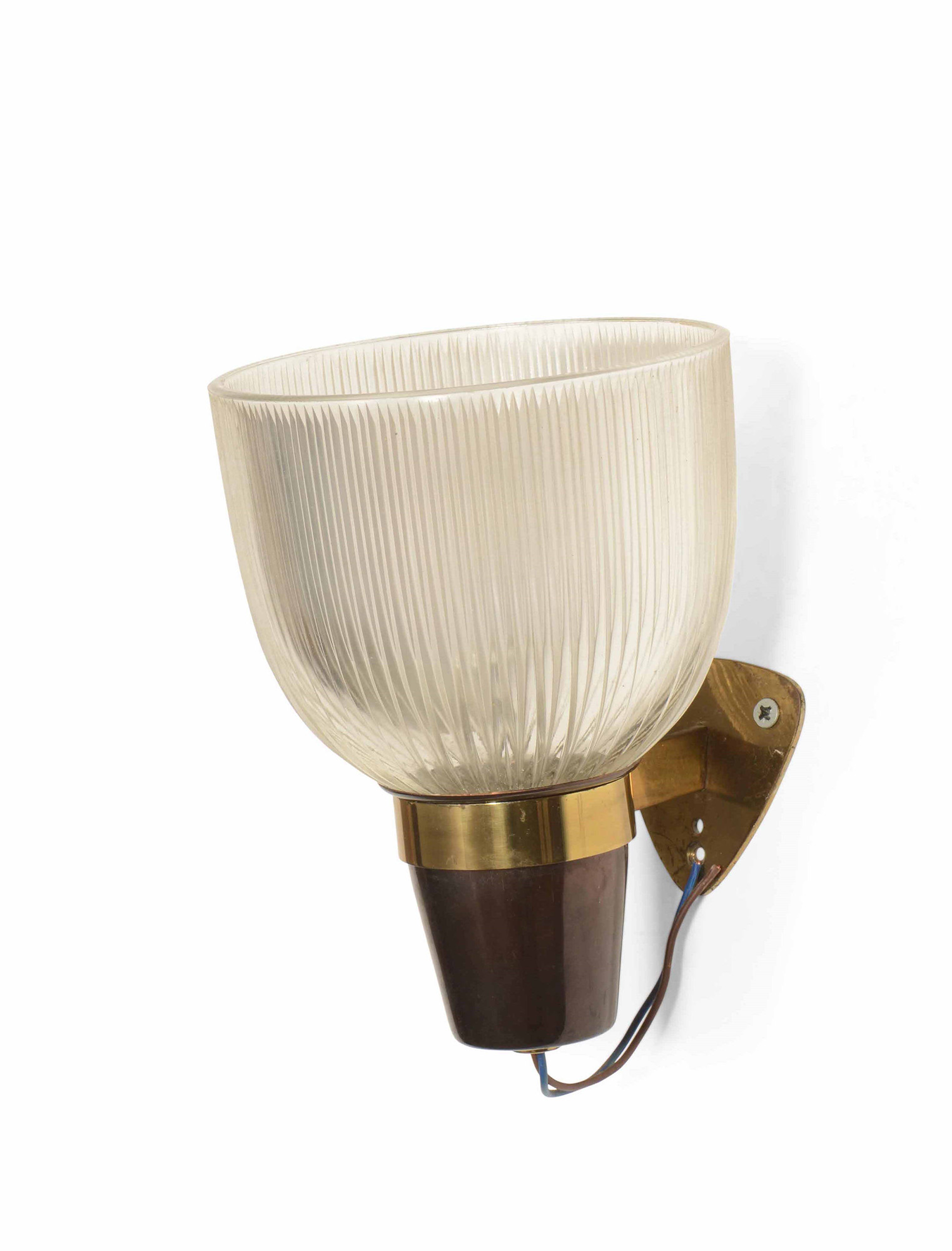 Ignazio Gardella, Lampada da parete mod. Lp5 con struttura in ottone e ottone laccato. Diffusore in vetro pressato prismatico. Prod. Azucena, Italia, 1958 cm 16x22x20