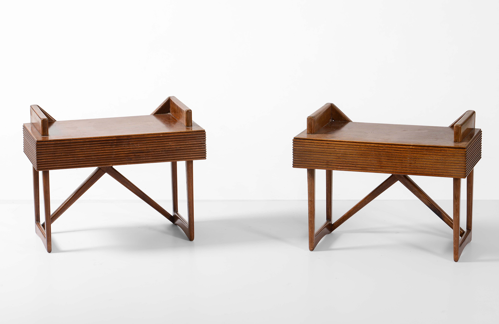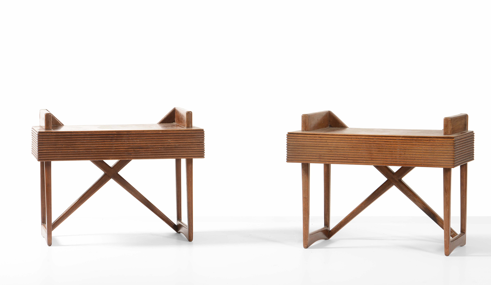 Coppia di comodini con struttura in legno., Prod. Italia, 1950 ca. cm 35x60x48