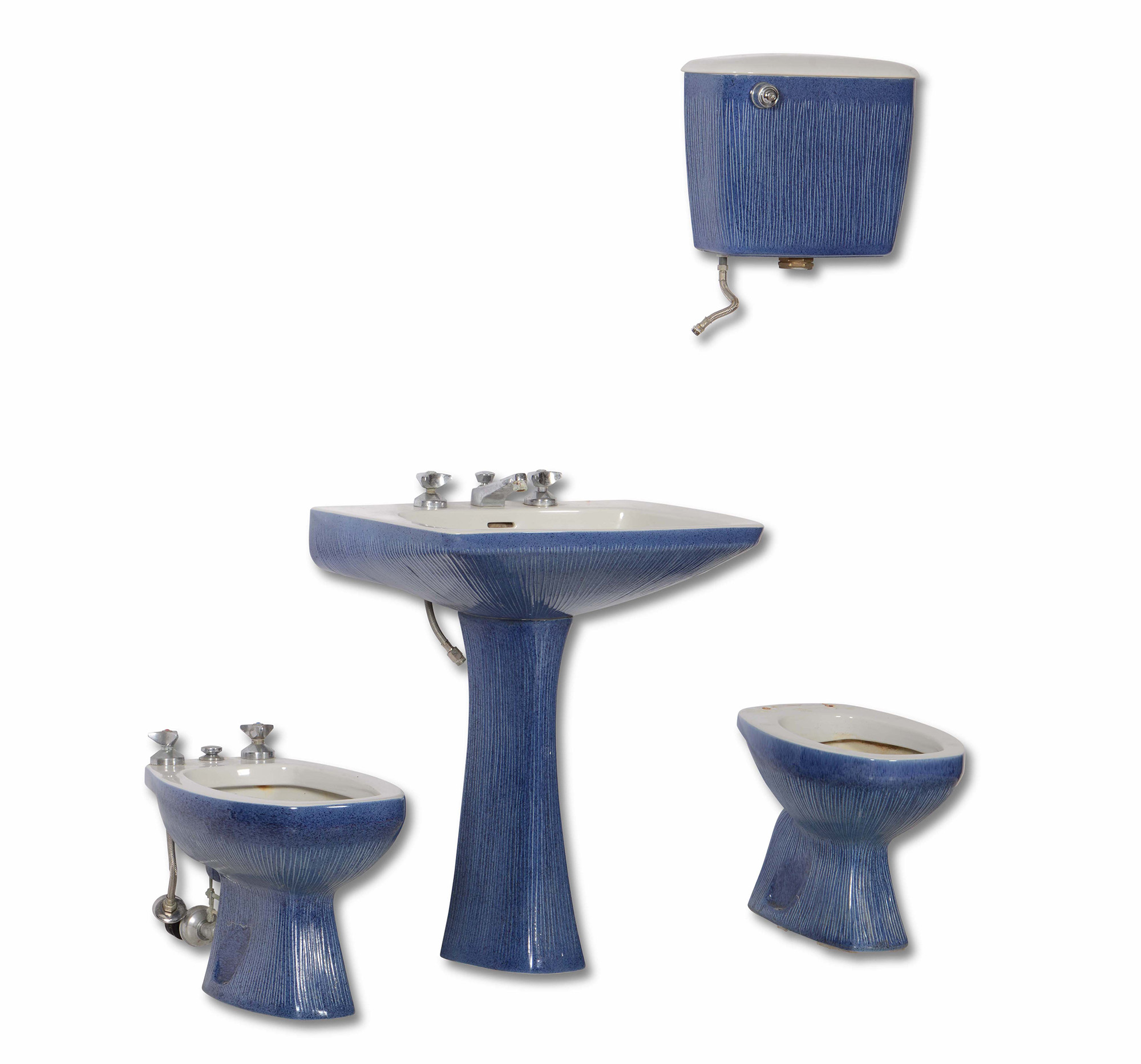 Antonia Campi, Set da bagno in ceramica smaltata. Marchio originale Richard Ginori Lavenite. Prod. Richard Ginori, Italia, 1950 ca. lavandino cm 70x55x81