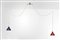 Lampada a sospensione con diffusori in metallo laccato e particolari in ottone.,