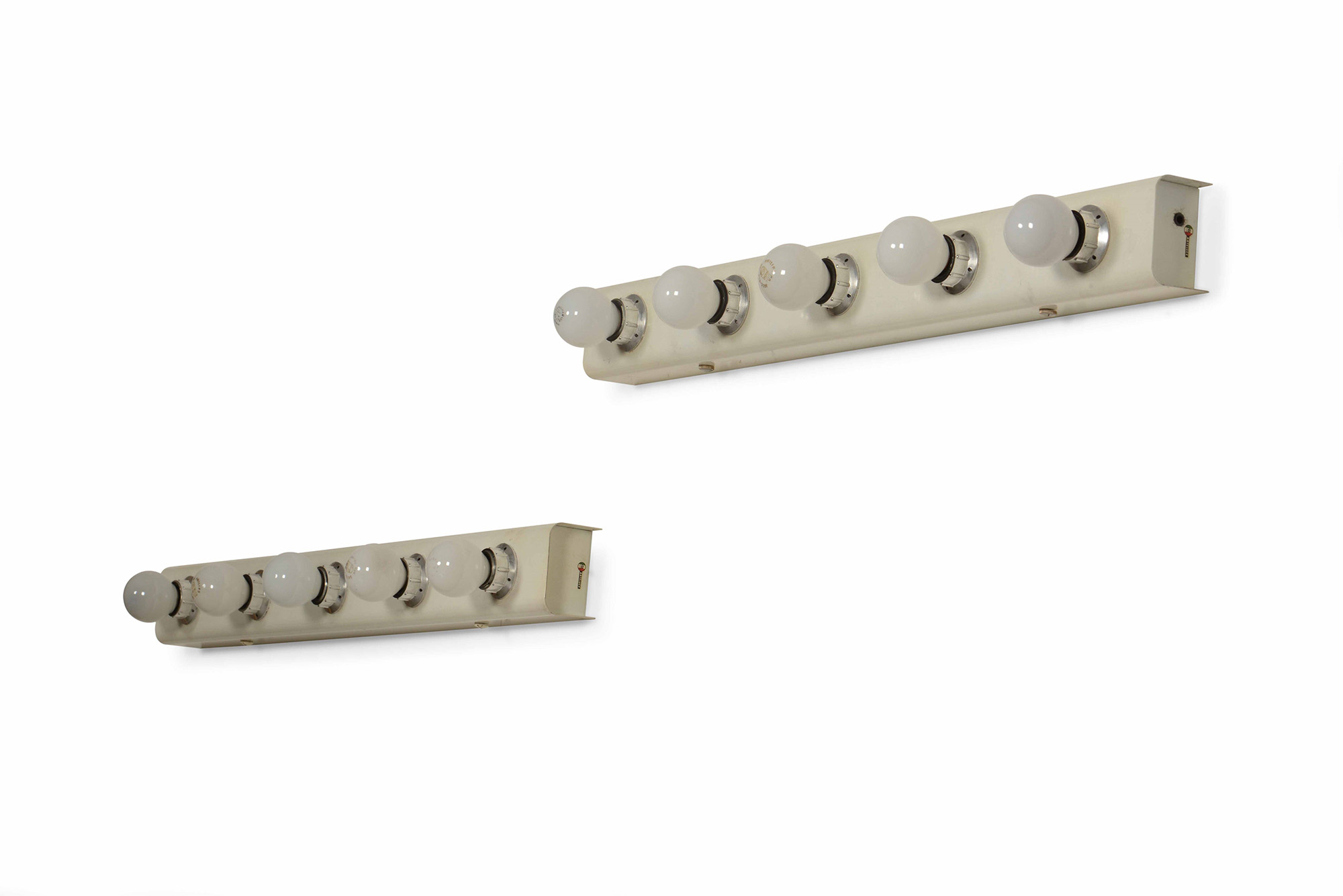 Gino Sarfatti, Coppia di lampade da parete con struttura in metallo laccato. Etichetta originale. Prod. Arteluce, Italia, 1960 ca. cm 65x7x6