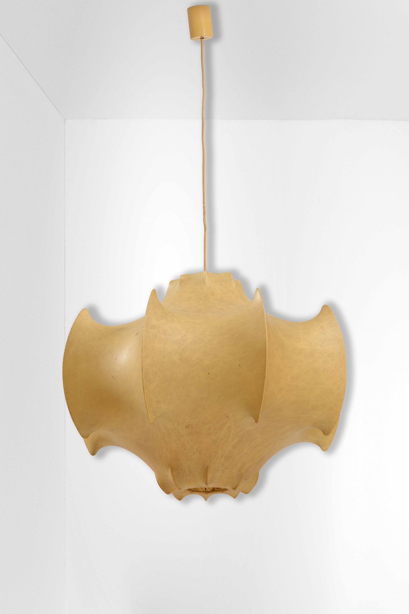 Achille Castiglioni, Lampada a sospensione mod. Taraxacum con struttura in metallo e rivestimenti in cocoon. Prod. Flos, Italia, 1960 ca. cm 70x110