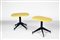 Coppia di sgabelli con struttura in ottone laccato e rivestimenti in skai.,