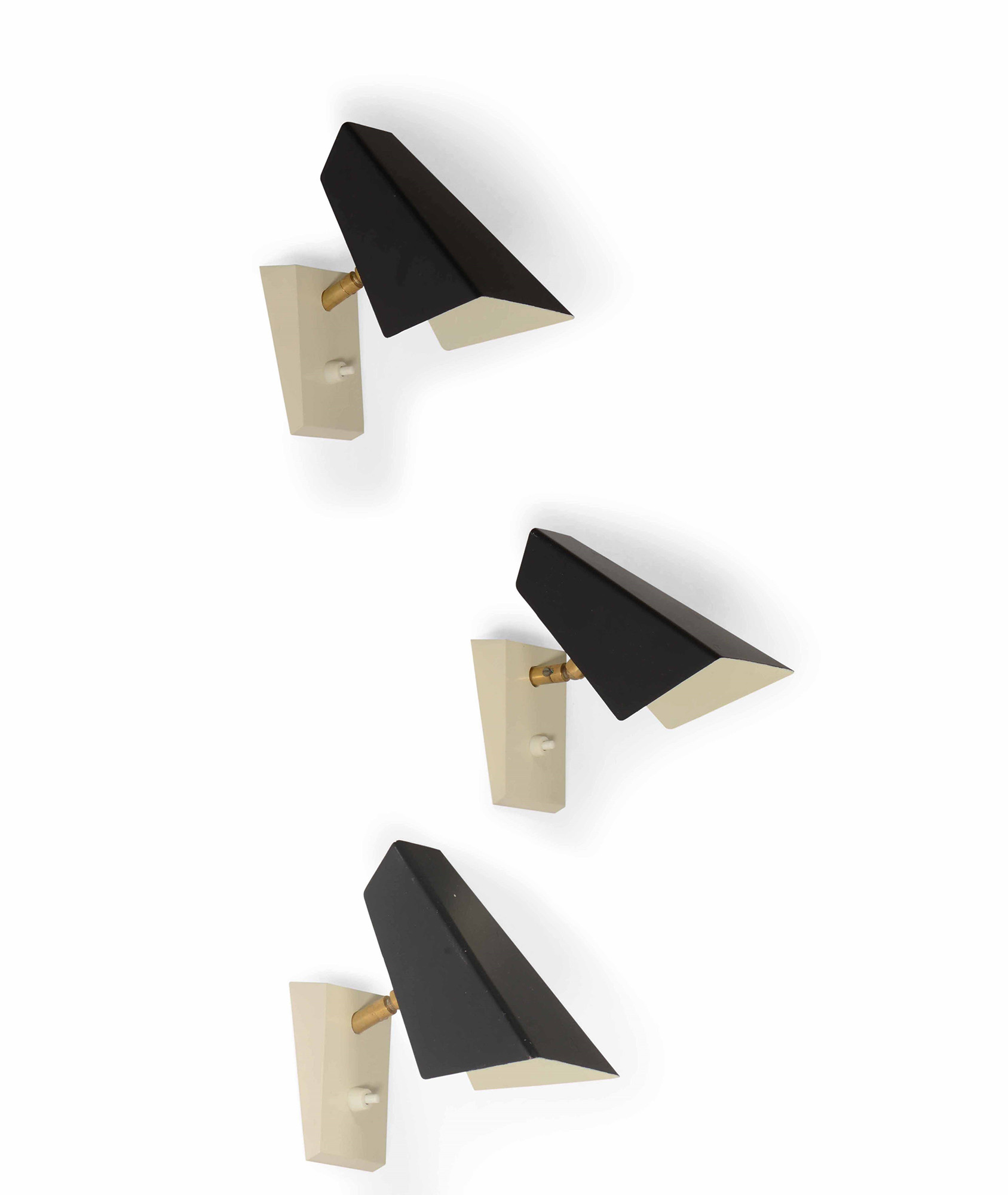 Stilnovo, Set di tre appliques con struttura in metallo laccato e ottone. Prod. Italia, 1960 ca. cm 9x18x19