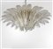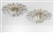 Barovier e Toso, Coppia di plafoniere in metallo e ottone. Elementi diffusori in vetro di Murano. Etichetta originale. Prod. Barovier&Toso, Italia, 1960 ca. cm 60x60x20