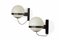 Coppia di lampade a parete con struttura in metallo laccato e diffusore in vetro opalino lucido.,