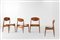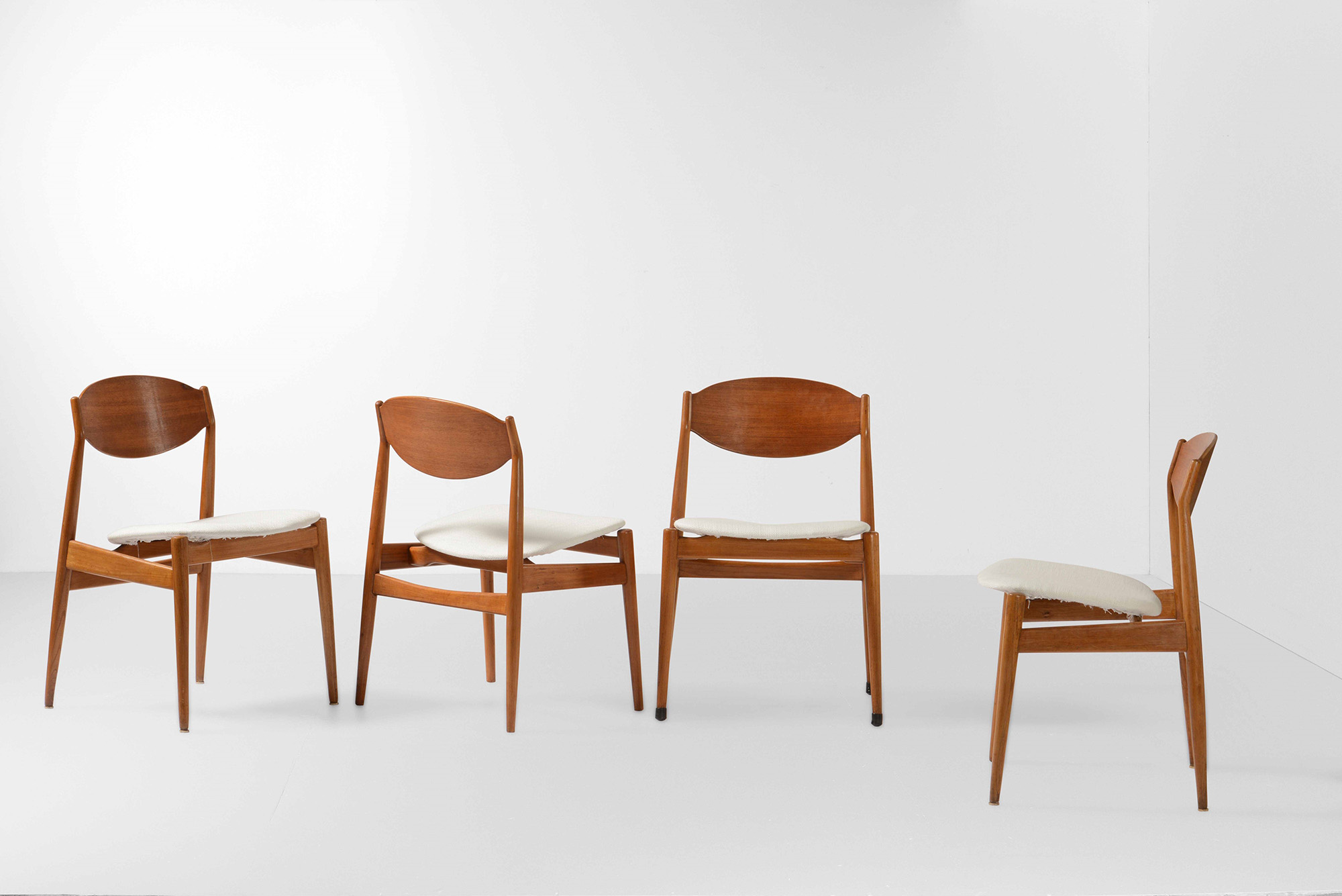 ISA, Quattro sedie con struttura in legno e rivestimenti in tessuto. Prod. ISA, Italia, 1960 ca. cm 51x48x77