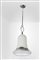 Angelo Brotto, Lampada a sospensione con struttura in metallo cromato e diffusore in vetro di Murano. Etichetta originale. Prod. Esperia, Italia, 1970 ca. cm 105x37