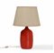 Lampada da tavolo con struttura in metallo laccato e paralume in tessuto.,