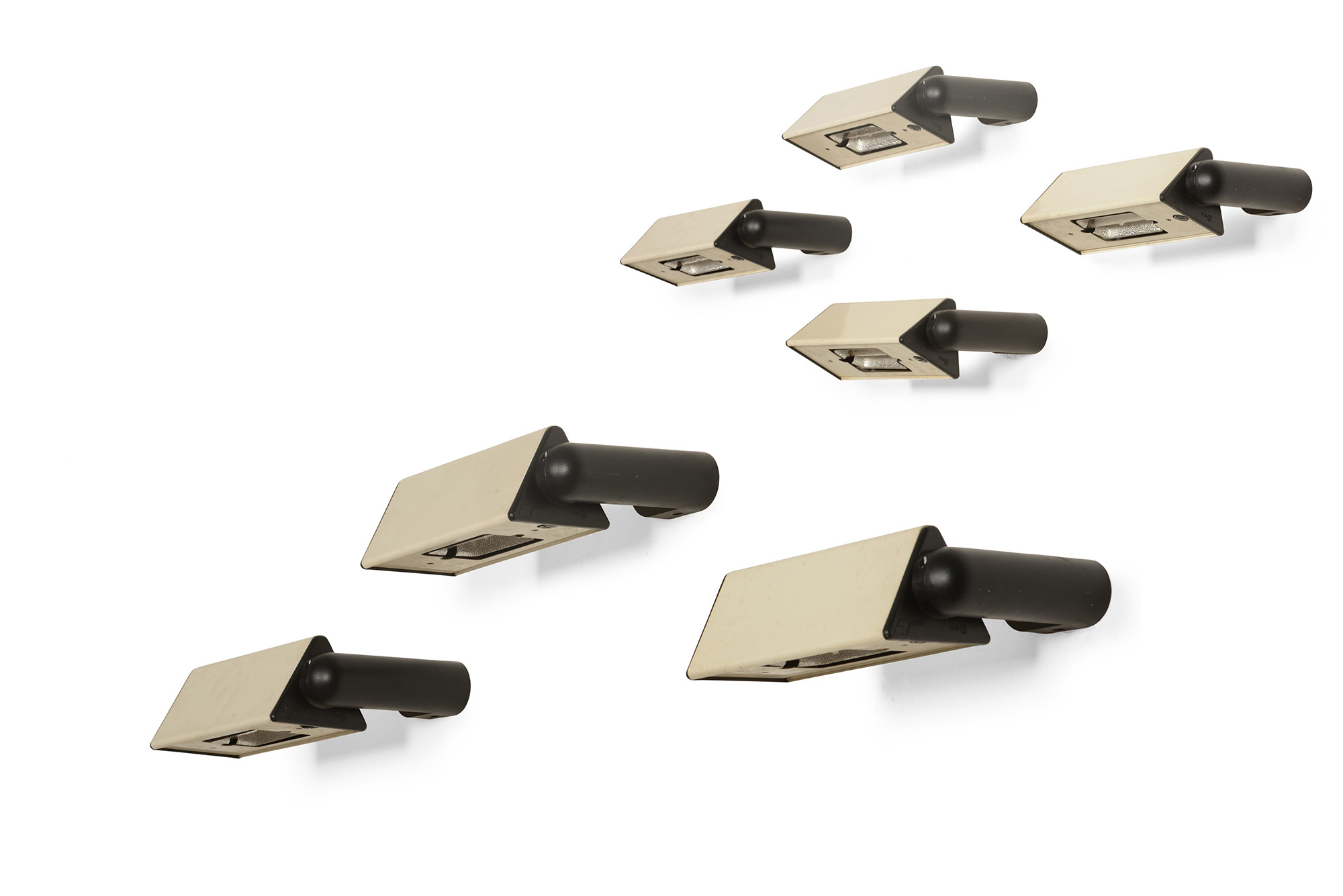 Sette faretti da parete con struttura in metallo laccato.,