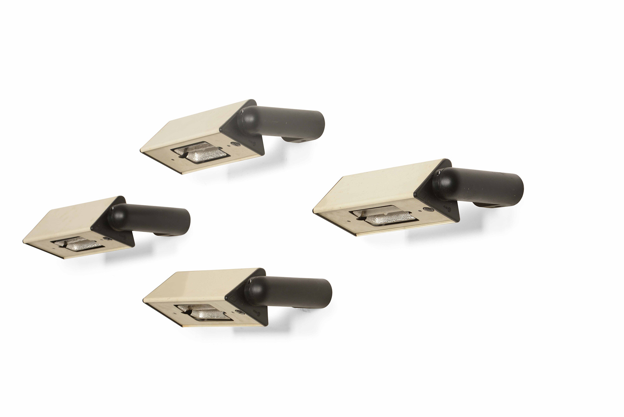Sette faretti da parete con struttura in metallo laccato., Prod. Italia, 1970 ca. cm 27x8x19