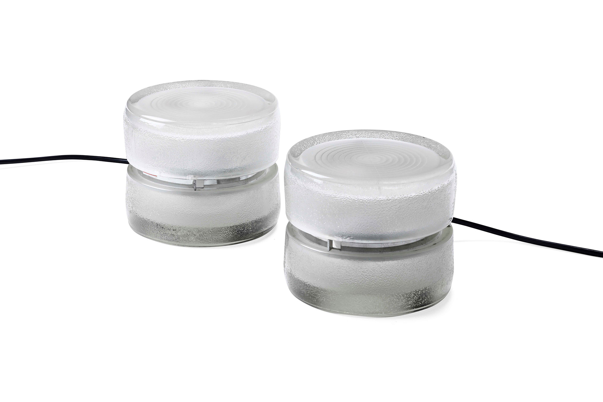 Eugenio Gentili Tedeschi, Coppia di lampade da tavolo mod. Yo Yo con struttura in metallo e vetro opalino. Prod. Fontana Arte, Italia, 1970 ca. cm 14x12