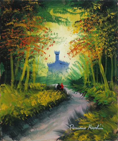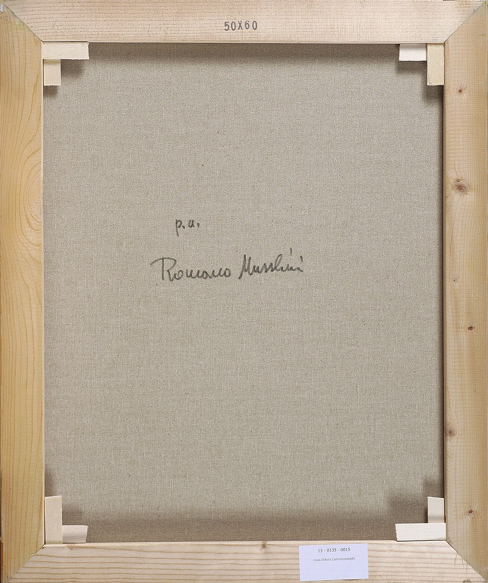 MUSSOLINI ROMANO (1927 - 2008) Senza titolo. Olio su tela. Cm 50,00 x 60,00. Firma in basso a destra. Al retro P.A. e firma.