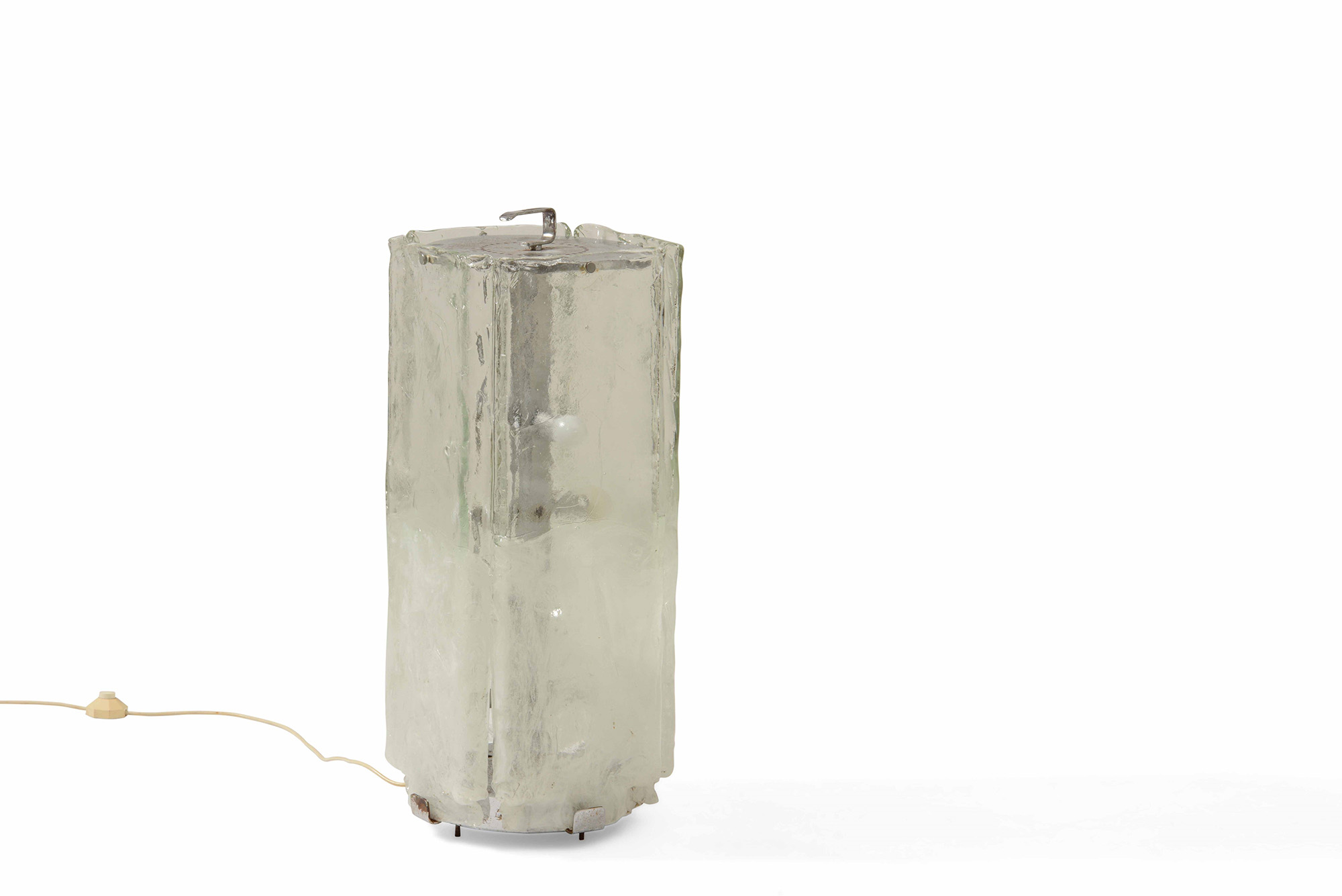 Lampada da terra in vetro di Murano e metallo., Prod. Italia, 1970 ca. cm 35x35x87