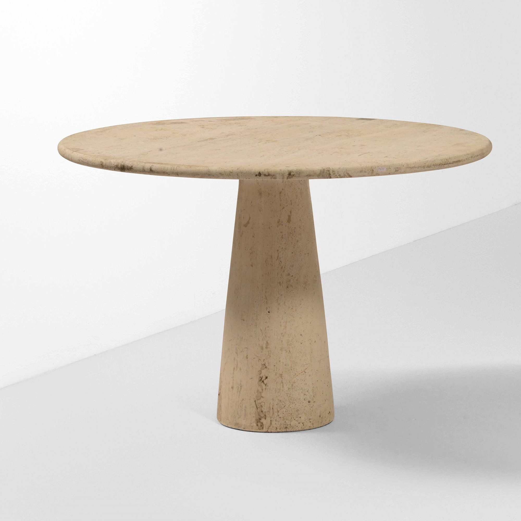 Tavolo con sostegno e piano in travertino., Prod. Italia, 1970 ca. cm 110x74