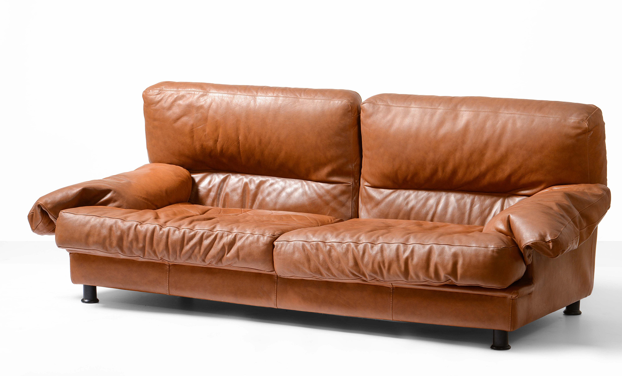 Italo Meroni, Divano mod. Avenue con struttura in legno, rivestimento in pelle e sostegni in metallo laccato. Prod. Cinova, Italia, 1987 ca. cm 220x105x85