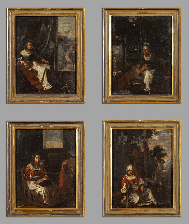 Scuola napoletana sec.XVII 'Le quattro stagioni' quattro olii