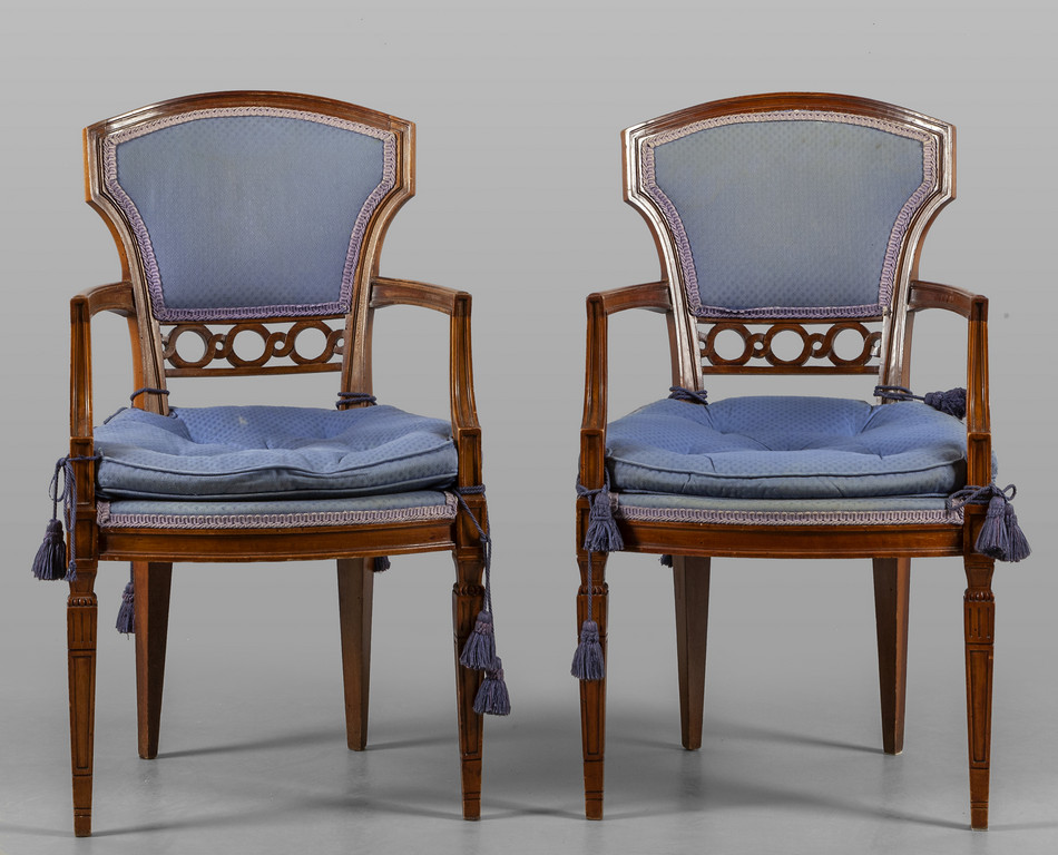 Coppia di poltroncine Direttorio in legno di frutto Veneto sec.XIX