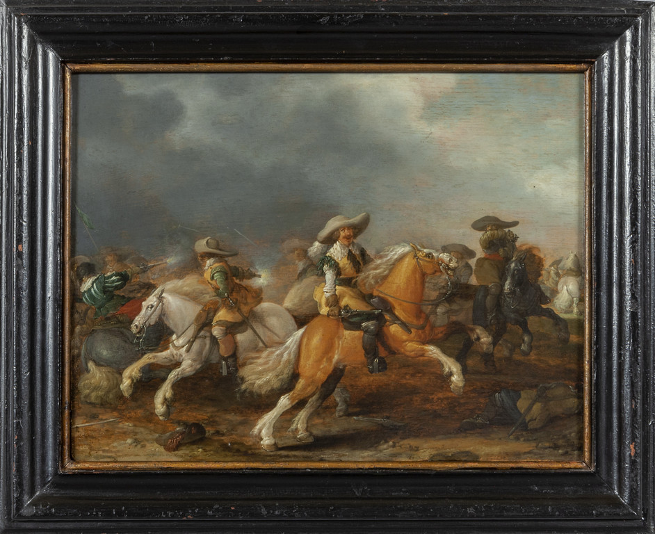 'Scontro di cavalleria' olio su tavola