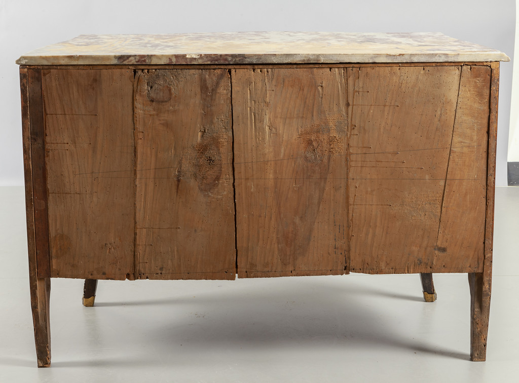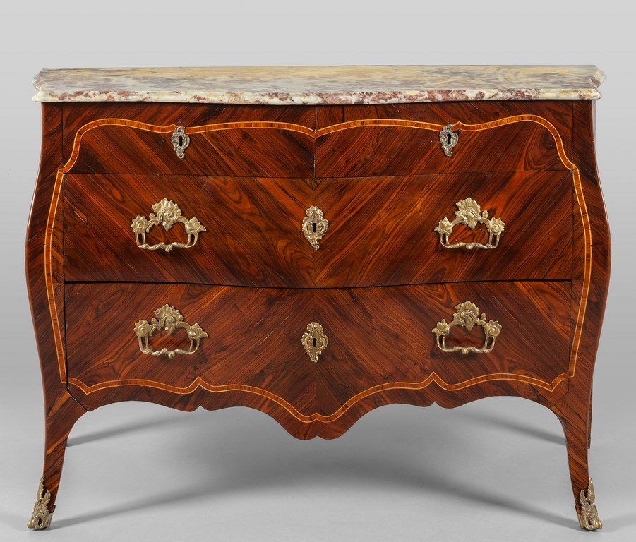 Comò Luigi XV a due cassetti piu due lastronato in palissandro e filettato in legni vari piano in marmo Genova sec.XVIII