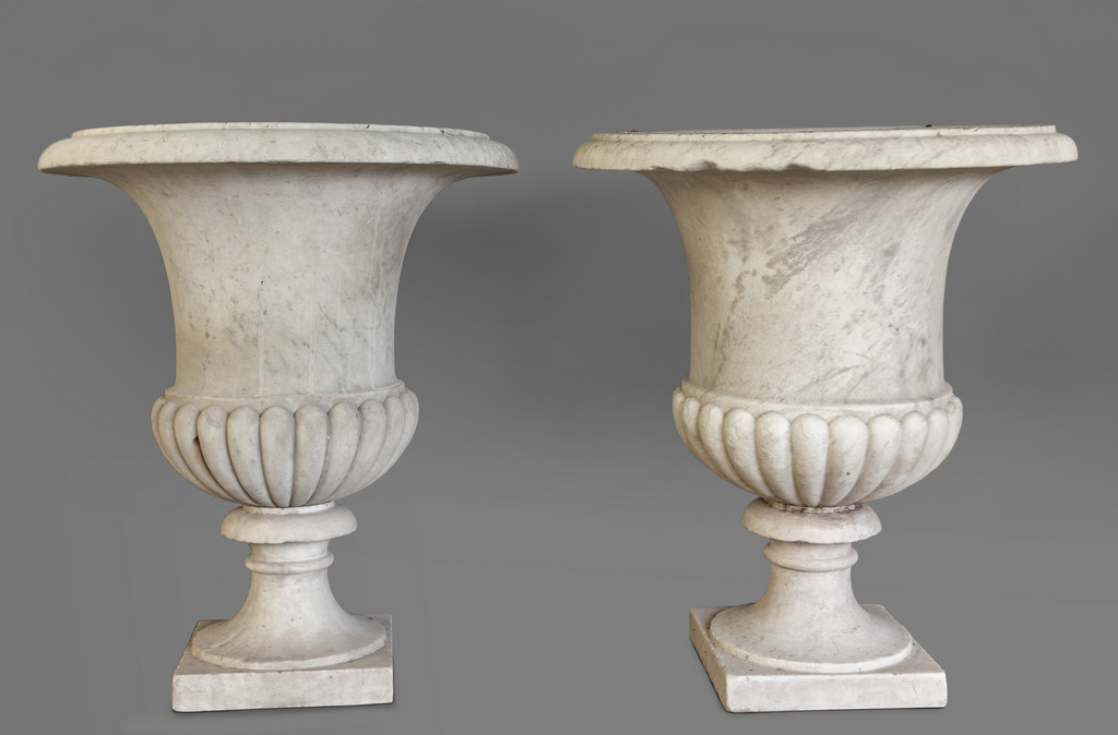 Coppia di grandi vasi Luigi XVI in marmo Genova fine sec.XVIII
