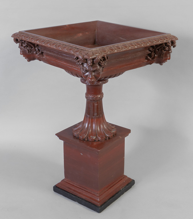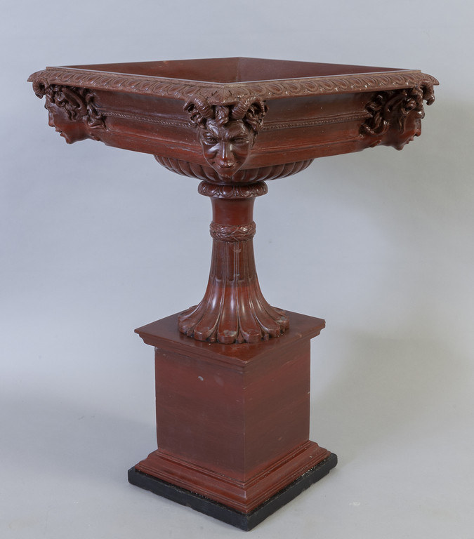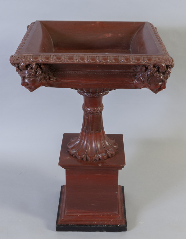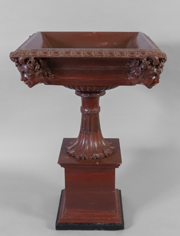 Tazza in marmo rosso antico finemente scolpito ai quattro angoli teste di satiri probabilmente bottega di Benedetto Boschetti Roma circa 1840