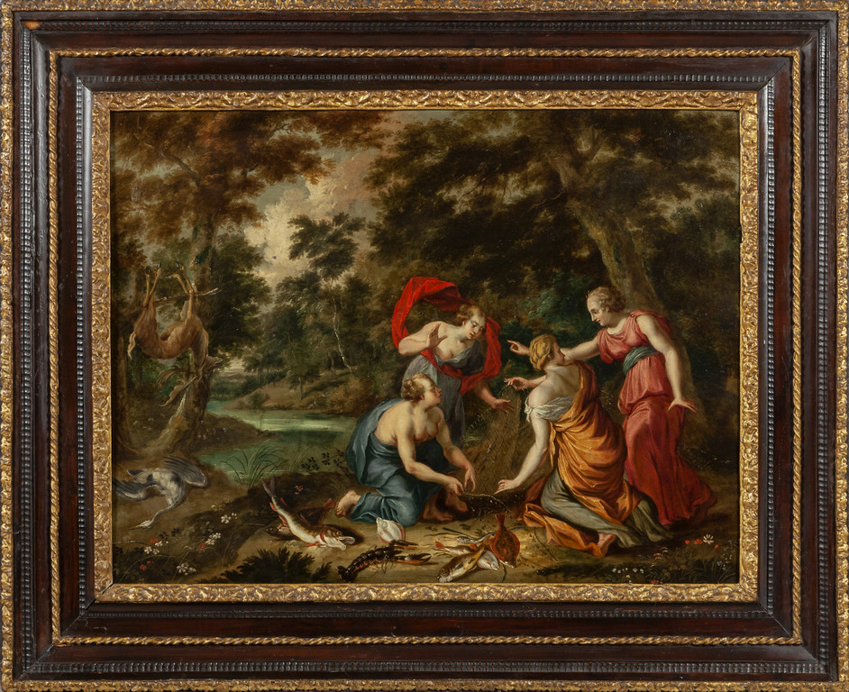 Scuola fiamminga sec.XVI (Jan Van Ballen) 'Scena mitologica' olio su rame
