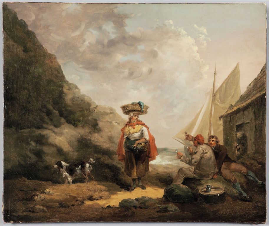 Scuola inglese fine sec.XVIII 'Pescivendola con pescatori' olio