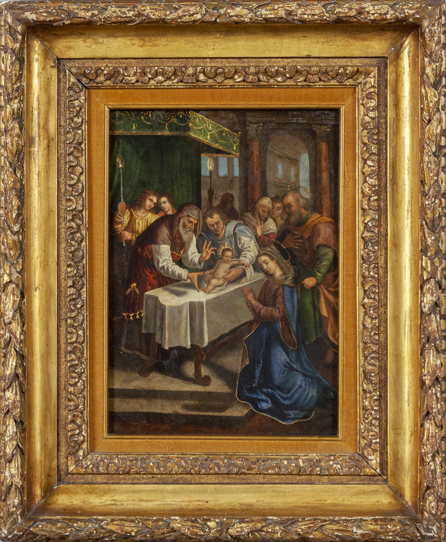 Scuola fiamminga sec.XVII (ambito di Denys Calvaert) 'La presentazione al tempio' olio su rame