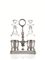 Oliera, Parigi, prima metà sec. XIX, in argento, base rettangolare a quattro piedini a sfera e portampolle sbalzate a palmette, fusto a balaustro schiacciato con presa ad anello rigato, completa di ampolle in vetro, g 440