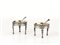 Coppia di saliere, Torino, inizi sec. XIX, in argento poggianti su tre piedini terminanti a zampa ferina, g 115, interni in vetro non pertinenti, ed una coppia di saliere, sec. XIX, bordo traforato con motivo “a greca”, a tre piedini ciascuno a metope femminili, interni vermeille, complete di due cucchiaini, g 175 (4)