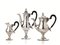 Caffettiera, cioccolatiera e zuccheriera, sec. XX, in argento, corpo...