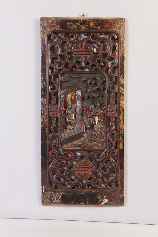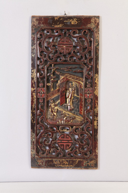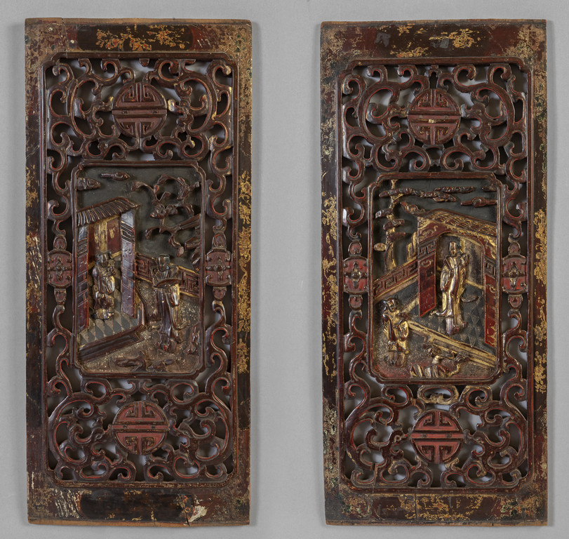 Due antichi pannelli in legno intagliato Cina sec.XIX