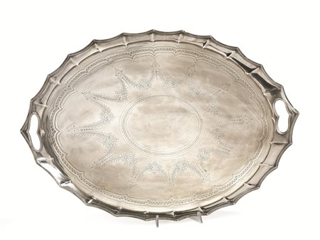Lotto 49 | Grande vassoio, Londra, 1878, di forma ovale in argento, piano inciso a...