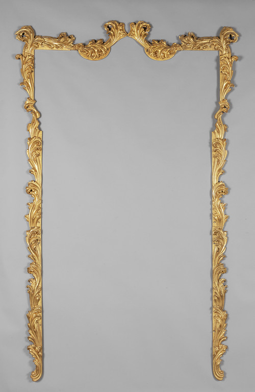 Cinque cornici in legno intagliato e dorato per contorno di porte