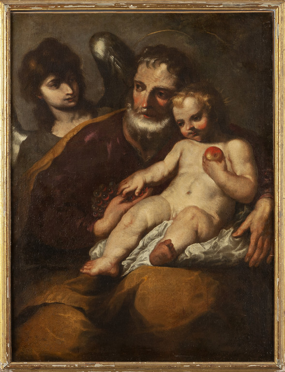 Scuola genovese sec.XVII 'San Giuseppe con il Bambino ed un angelo' olio
