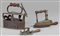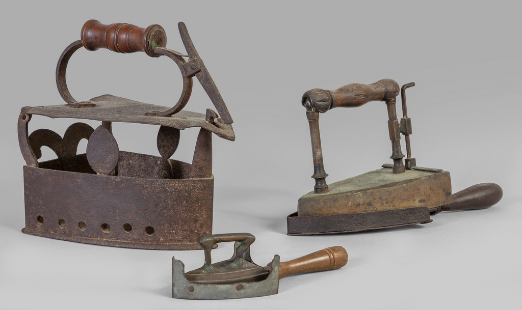 Tre antichi ferri da stiro di cui uno del sec.XVII con manico in bosso