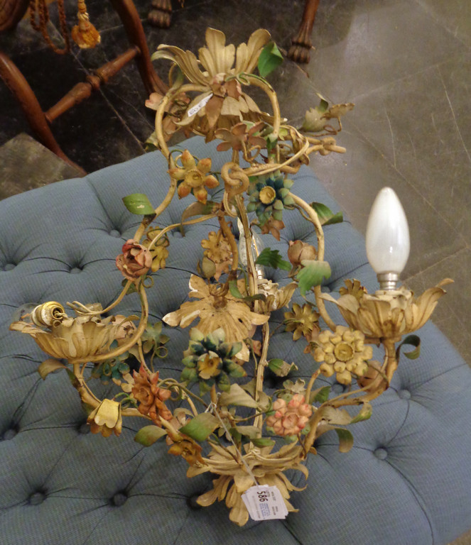 Lampadarietto a cestino in stile antico in tolla dipinta decorato in policromia con fiori e foglie Piemonte sec.XX